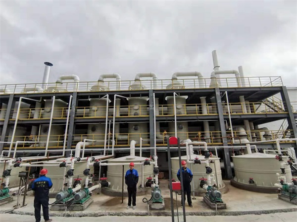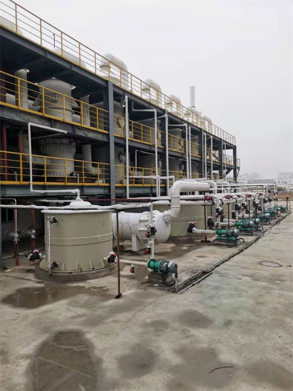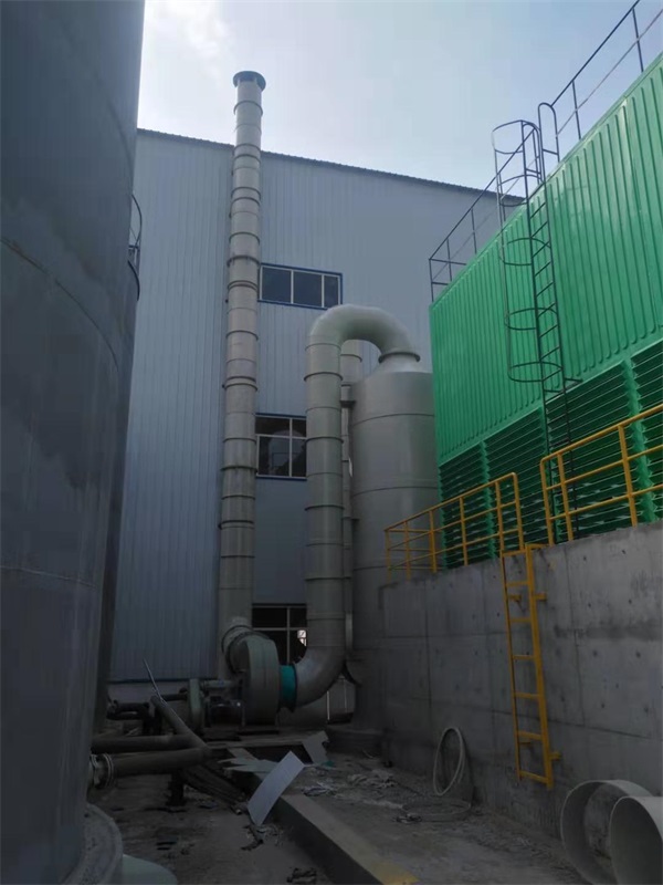 內(nèi)蒙客戶成品現(xiàn)場,酸霧廢氣由風(fēng)管引入凈化塔,經(jīng)過填料層,廢氣與氫氧化鈉吸收液進行氣液兩相充分接觸吸收中和反應(yīng),酸霧廢氣經(jīng)過凈化后,再經(jīng)除霧板脫水除霧后由風(fēng)機排入大氣。吸收液在塔底經(jīng)水泵增壓后在塔頂噴淋而下,***后回流至塔底循環(huán)使用。